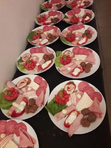 (aperitiv, gustare calda, supa/ciorba, friptura asortata: pasare si porc cu garnitura si salata, sarmale, suc, apa minerala si plata,cafea si bere la discretie)